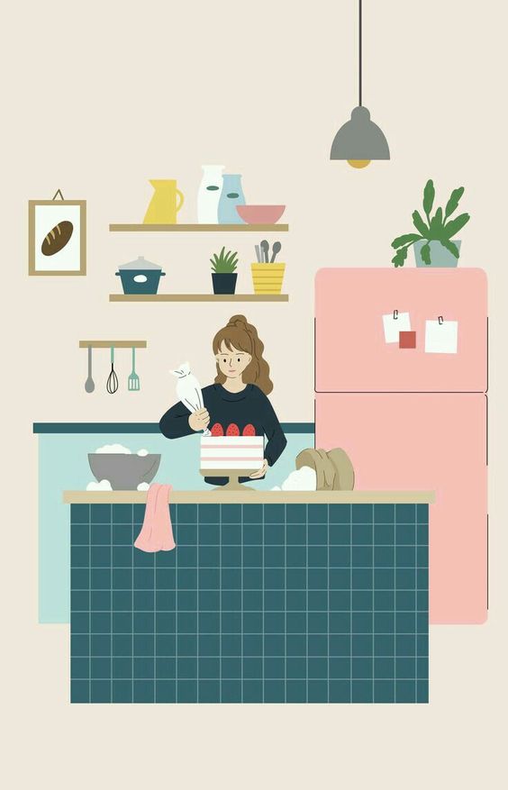 أحب رائحة الكعك في المنزل لأنه مرتبط عندي بذكريات عزيزة، ,اريد أن اصنع لأطفالي ذكريات كتلك. فأعدت إحياء هذا الطقس امتدادًا لحنان أمهات التسعينات الميلادية وما قبل. نحب كعك البرتقال و كعك الفراولة والكريمة البيضاء وأحاول أن اعيد طقوس قديمة مثل إعطاء أطفالي أداتي الخفق ليأكلوا ما تبقى. استطيع أن اتصور تلك الأيام أمامي الآن وأنا انهي بقايا الكريمة اللذيذة. وبالطبع لا ننسى الكعكة الرخامية بتموجات الشكولاته والفانيلا، ولكن الكعكة المفضلة عندنا هي خبز الموز.